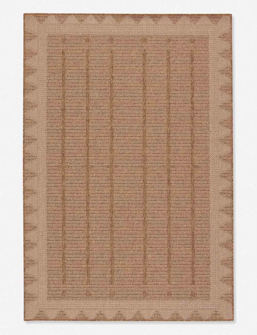 Naturally-inspired textures get a modern touch in this rich, earth-tone floor rug. Its durable synthetic fibers are power-loomed for a low-pile, easy-care foundation that you can style indoors or out. We love this rug for its versatile appeal, whether in a kitchen or anchoring an outdoor living space.