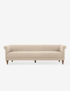 Rolled arms and a plush seat pair timeless style with transitional appeal in the Stetson sofa. The welt cord trim and ornately styled legs offer a traditional couch seat in a grounded neutral tone that can fold seamlessly into your look.
