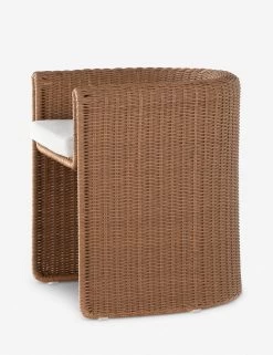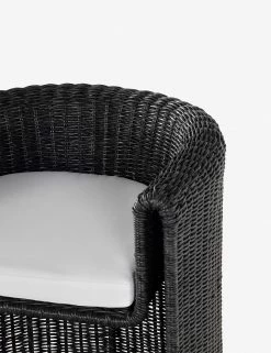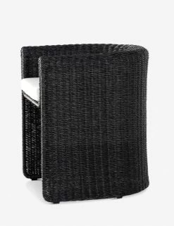 With a nod to retro style, this curvy wicker dining chair is the ultimate element for al fresco dining. Fluid design, all-weather wicker, and a performance upholstered cushion create a versatile dining seat, fit for the most refined aesthetics whether in a transitional space or patio set.