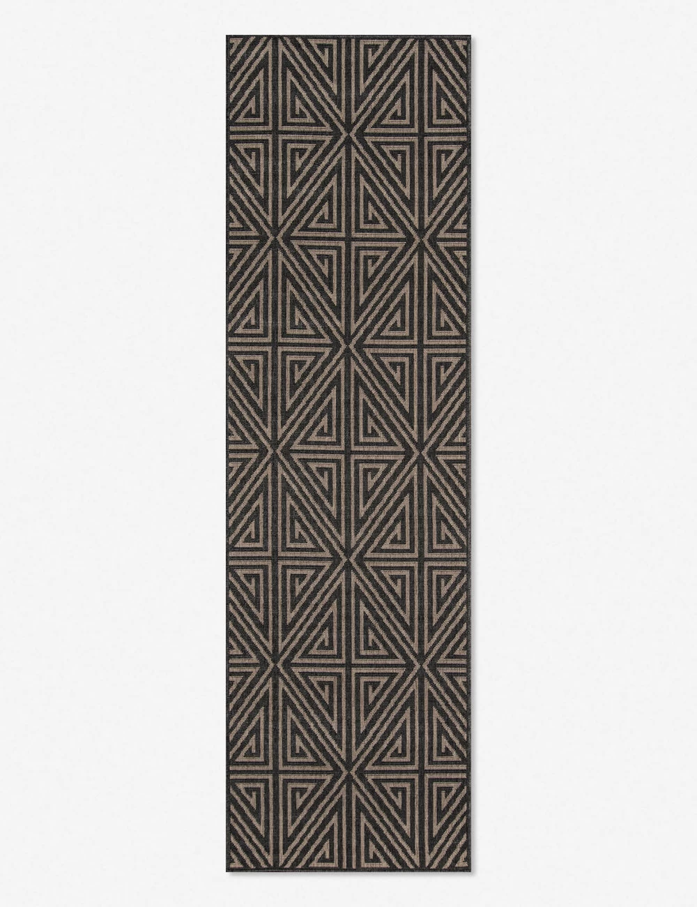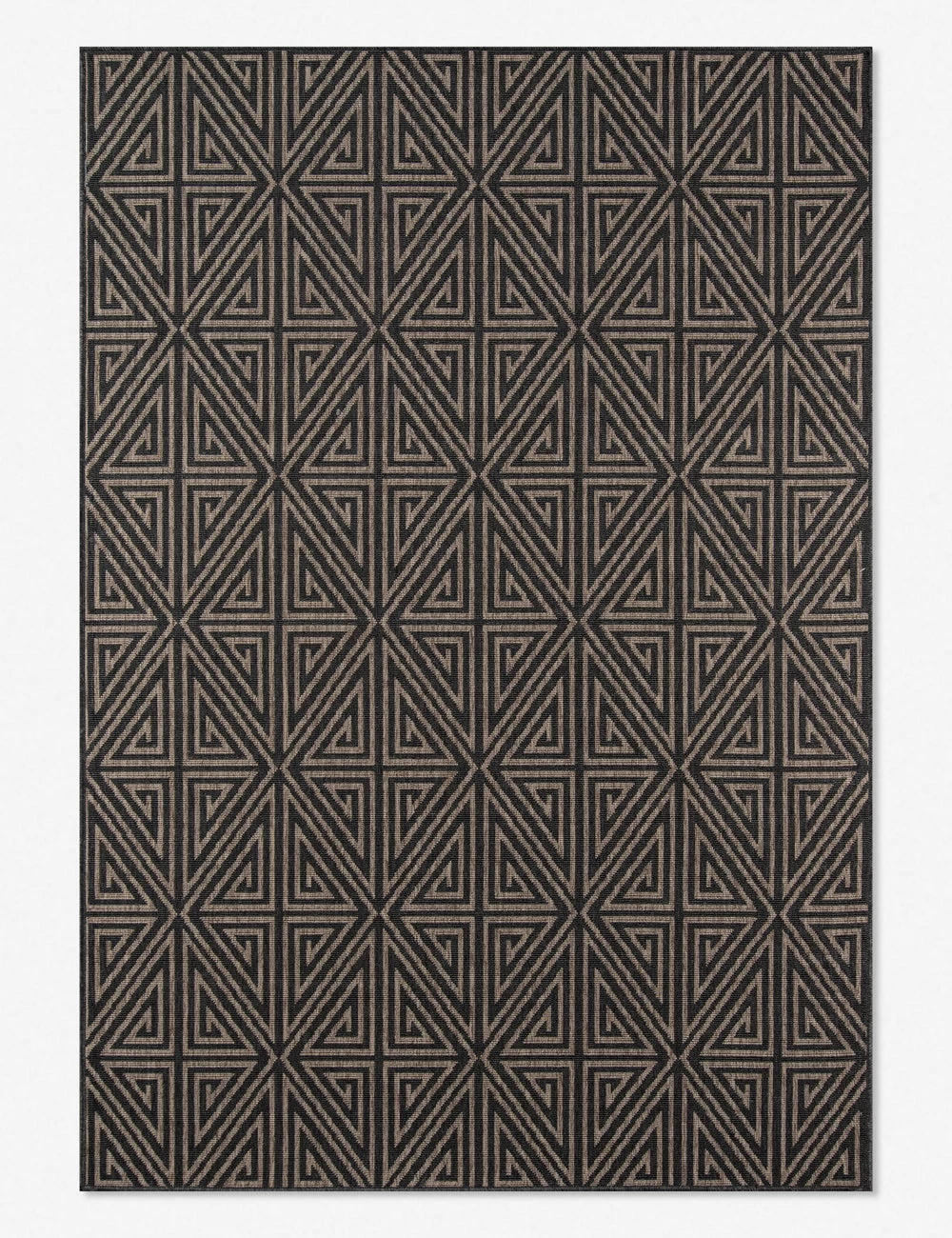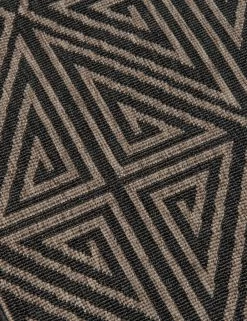 In a striking black-and-natural color palette, this woven area rug features a statement-making geometric pattern. Weather-resistant and durable, this rug is also a great fit for outdoor living spaces, as well as high traffic areas like entryways and living rooms.