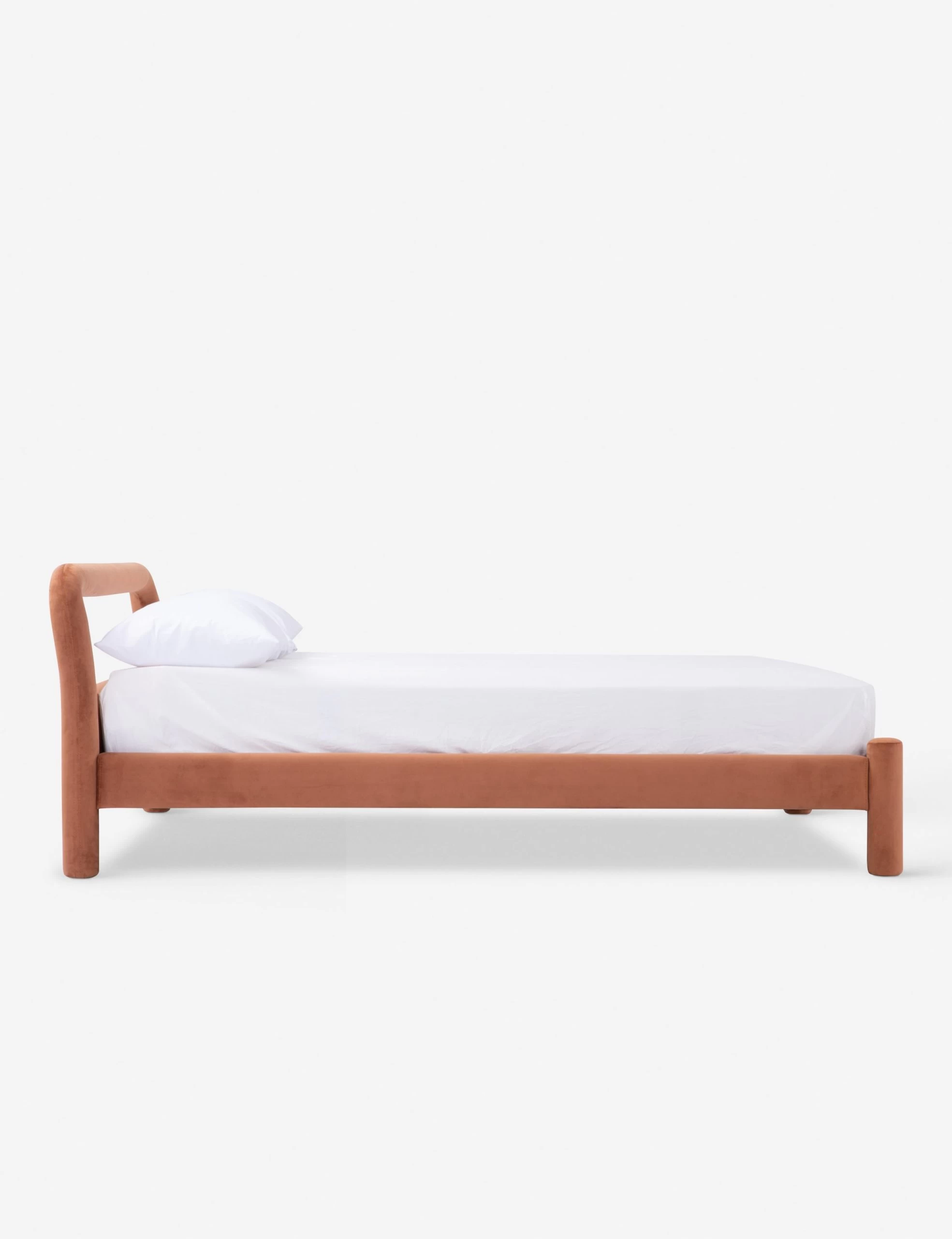 Furniture design studio Sun at Six seeks to help create open, natural spaces with their line of minimal furniture. Rounded lines and a plush velvet frame bring soft appeal to this platform bed. We love this bed frame’s sculptural profile for a fresh and modern bedroom feel.