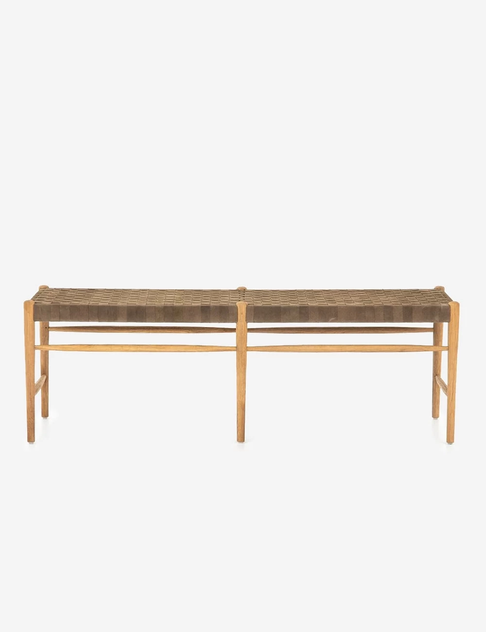 Tapered dowels give this classic bench seating a more modern look, finished in a light oak stain for a dose of natural warmth. The woven leather seat adds contrast in texture and color, and we can’t get enough.