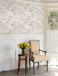 A modern floral wallpaper with intricate bunches of queen’s lace spread on a minimalist design. From a collection by Sarah Jessica Parker and designer Eric Hughes, this wallpaper offers that perfect pop of sophistication with timeless appeal.