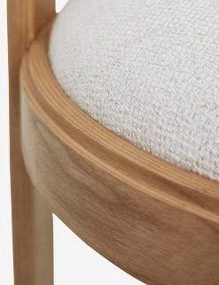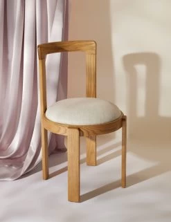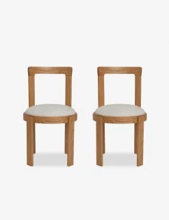A pared-down, curved design and warm natural ash finish make this Tobie Dining Chair set an elevated essential. Solid ash wood frames showcase character-rich wood grain and are finished by a cozy seat upholstered in a textured weave performance fabric in ivory. We love sitting these chairs for a dining table with lighter wood finishes and refined neutrals.