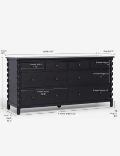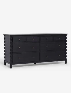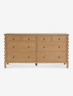 Ample drawers and a spacious top bring effortless bedroom appeal to this classic dresser from the exclusive Ginny Macdonald collection for Lulu and Georgia. Inspired by Ginny’s English heritage and fondness for handcrafted details, each piece in the collection fuses her British roots with her California lifestyle. Turned legs add a touch of drama to the low-profile design made from ash wood.