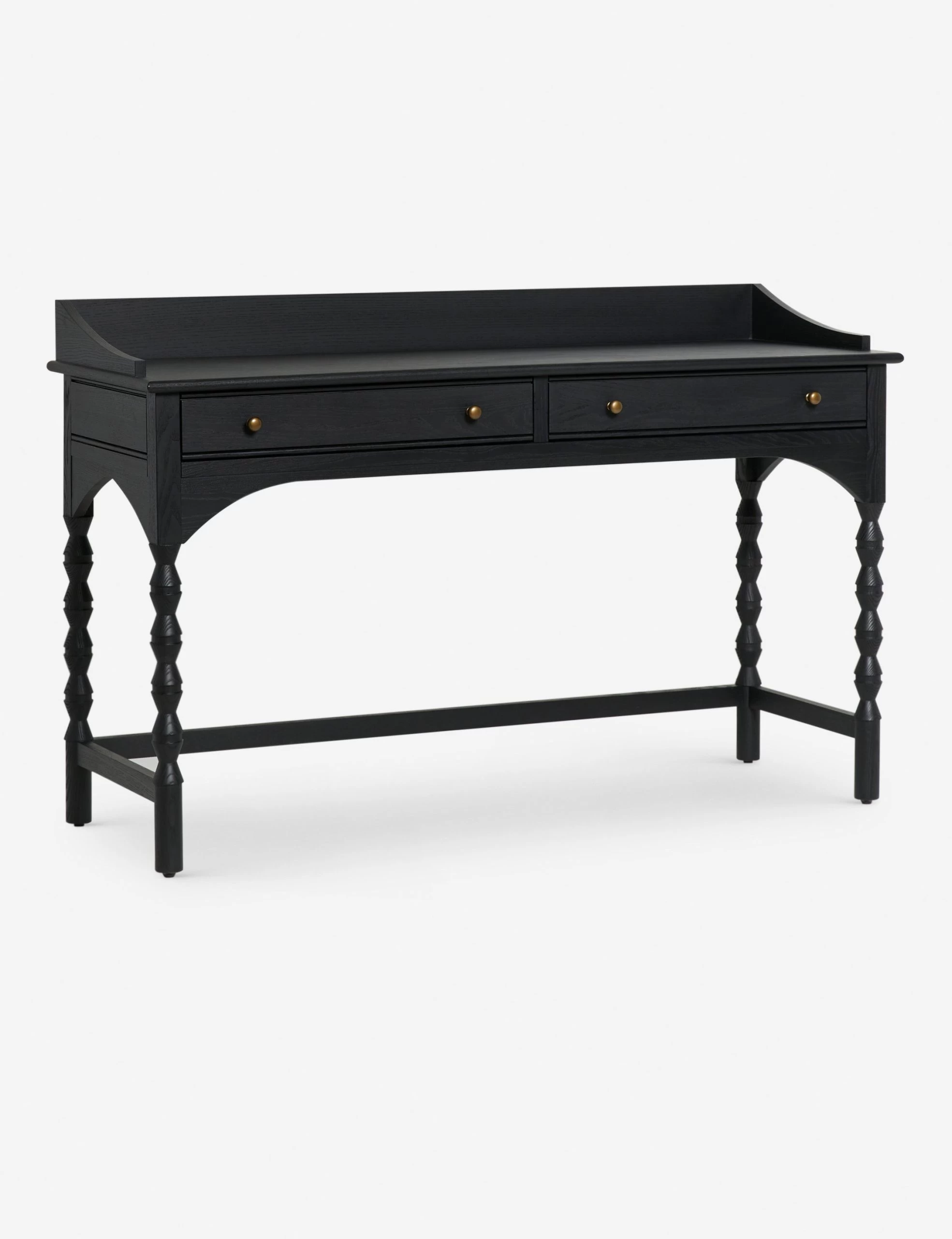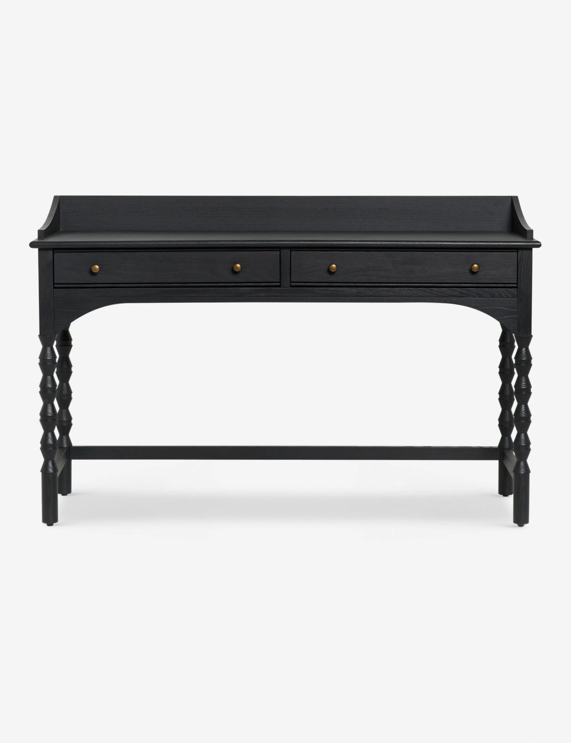 Traditional meets modern in this console table from the exclusive Ginny Macdonald collection for Lulu and Georgia. Inspired by Ginny’s English heritage and fondness for handcrafted details, each piece in the collection fuses her British roots with her California lifestyle. Turned legs add a touch of drama to the console’s transitional design featuring an airy profile with two spacious drawers.