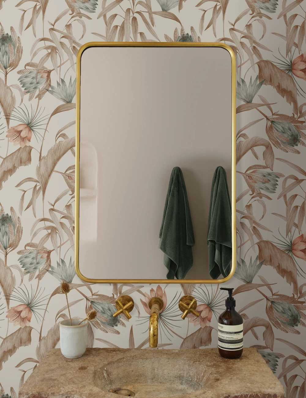Designed exclusively for Lulu and Georgia, our Rylee + Cru home wallpaper collection features subtly textured designs inspired by travel, nature, and vintage illustrations. The exotic, botanical scene on our Tropical Wallpaper adds a neutral, nature-inspired look for a guest bath or pretty dining nook.