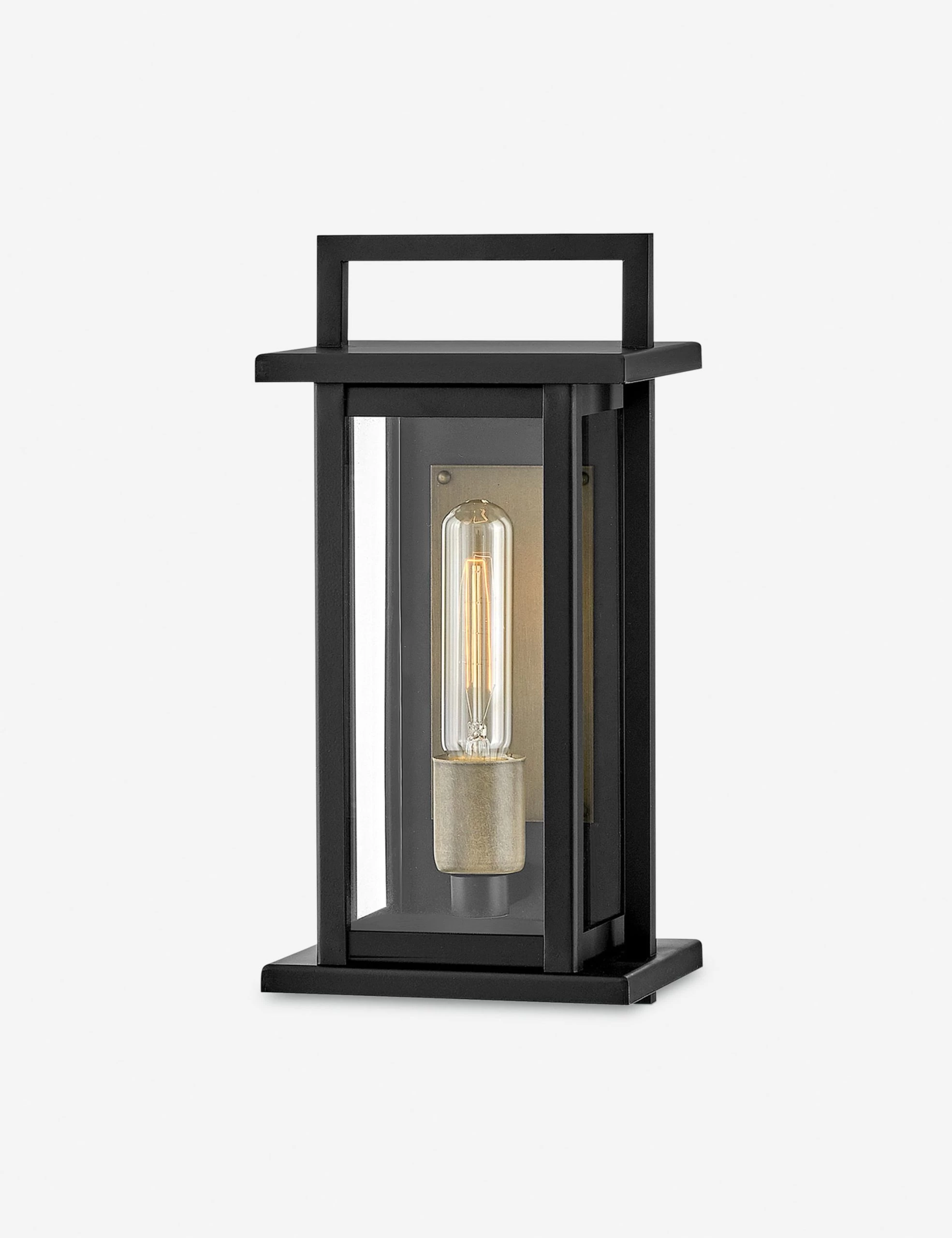 The Tull sconce elevates functional lighting with a versatile design grounded in elegance. Clean lines form a linear profile that stuns with a sleek yet stately impact in black. This sconce light’s clear glass panes and bronze-finished backplate offer a bright pour of light—perfect for patios or walkways.
