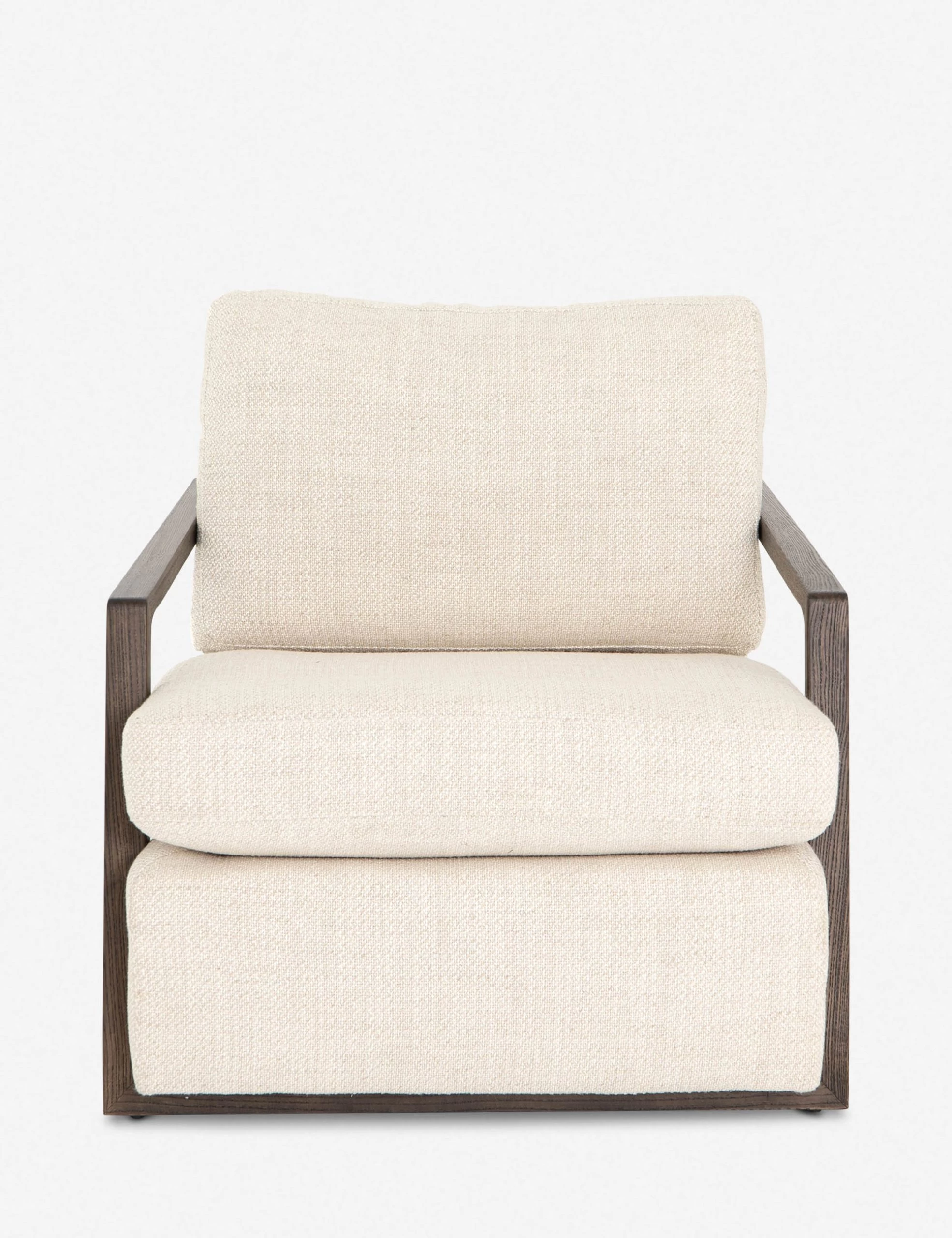Set for a gently reclined lounge appeal, this accent chair features an oak frame with plush and practical performance-upholstered seating. Style this chair with a pharmacy lamp or sculptural side table for a casually refined reading nook feel.