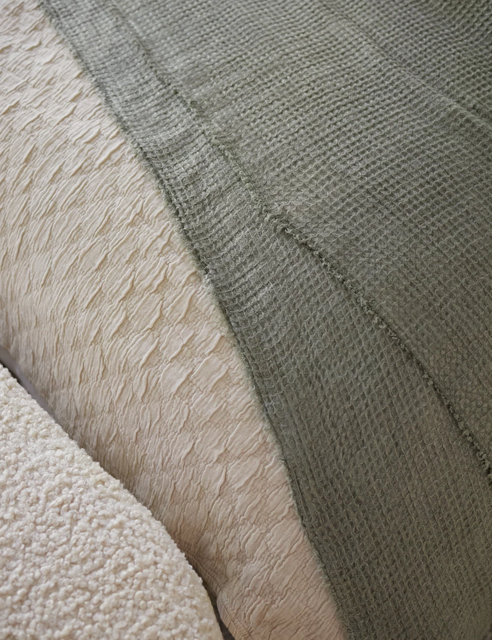 Featuring a waffle-textured weave and a lightweight linen, this oversized throw blanket adds instant cozy-cool vibes to any bedroom or living room. Unfinished edges give it a more casual, contemporary feel.