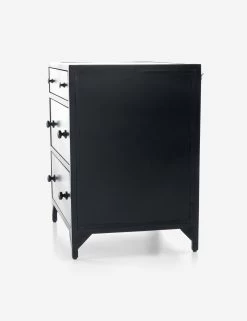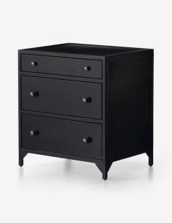 Perfect for industrial-inspired bedrooms, this nightstand brings a sophisticated touch thanks to round brass drawer pulls that add a little shine to the black iron framing. Designed with three drawers for plenty of storage space.
