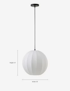 Mid-century design gets fresh touch in this lantern-like pendant light. The delicate touch of the white silk pops against the black finish of the hardware offering a refined feel set for modern decor. The pendant’s ribbed globe radiates light for a warm and balanced glow overhead.