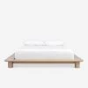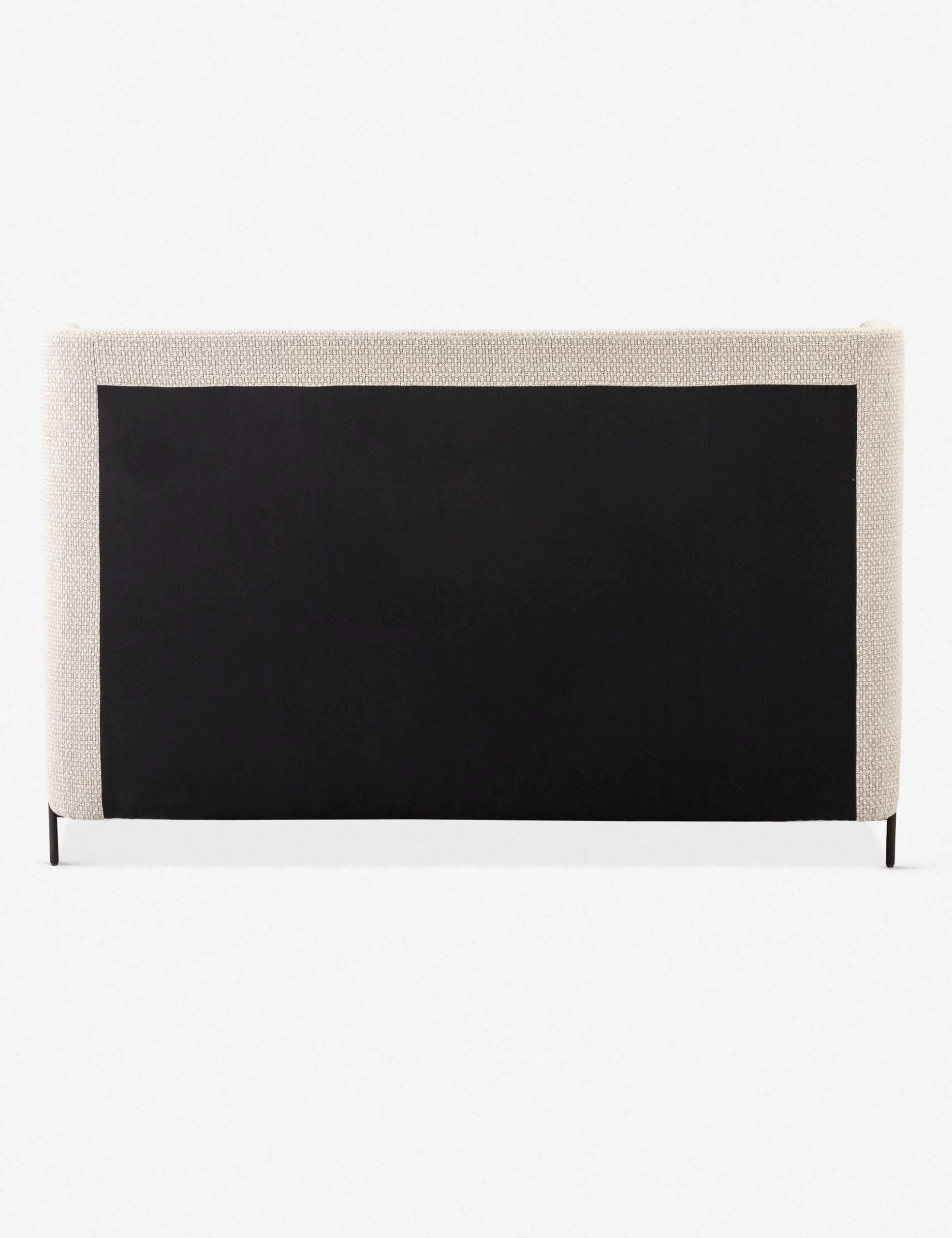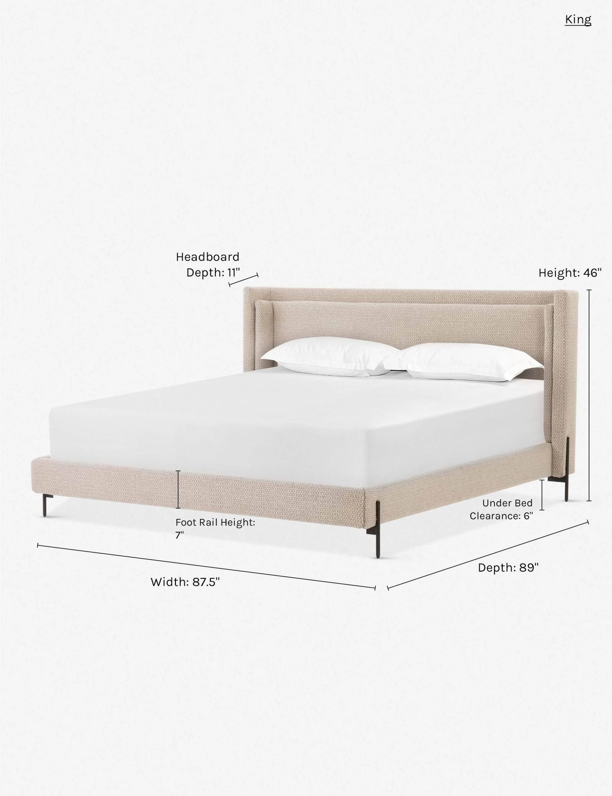 Create a lush and tactile refuge for yourself with this low-profile, shelter-style bed. In a soothing gray-oatmeal color this platform bed frame features textural upholstery and a slightly winged headboard. Cradled atop gunmetal-finished iron legs, we love rounding off the look with linen bedding and supersoft top layers.